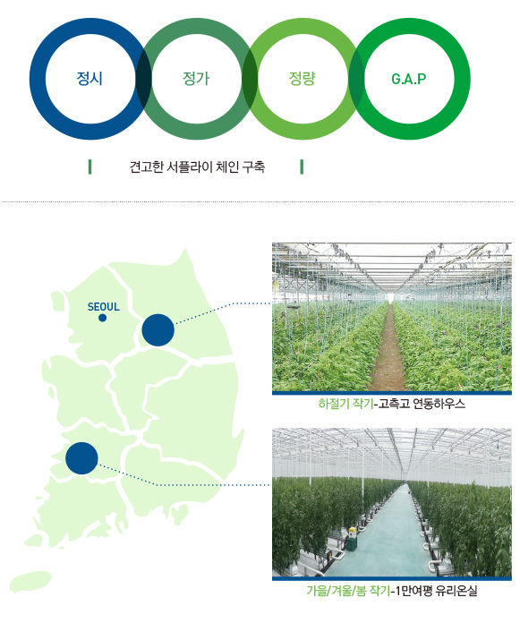 ·작기별 주요 생산지역의 농가들과 30년간 파트너쉽 운영