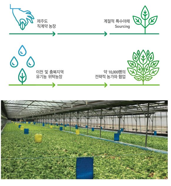 · 경기도 이천지역 3군데 및 충북지역 유기농 위탁농장을 포함 약 10,000평의 전략적 농가와 협업